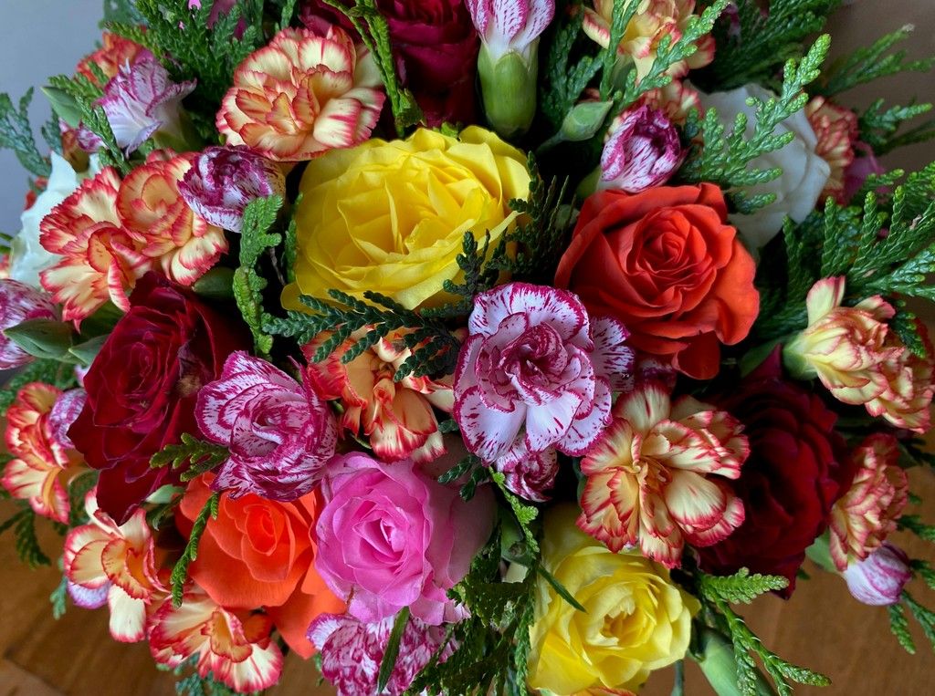 Colorful Bouquet of Roses and Carnations